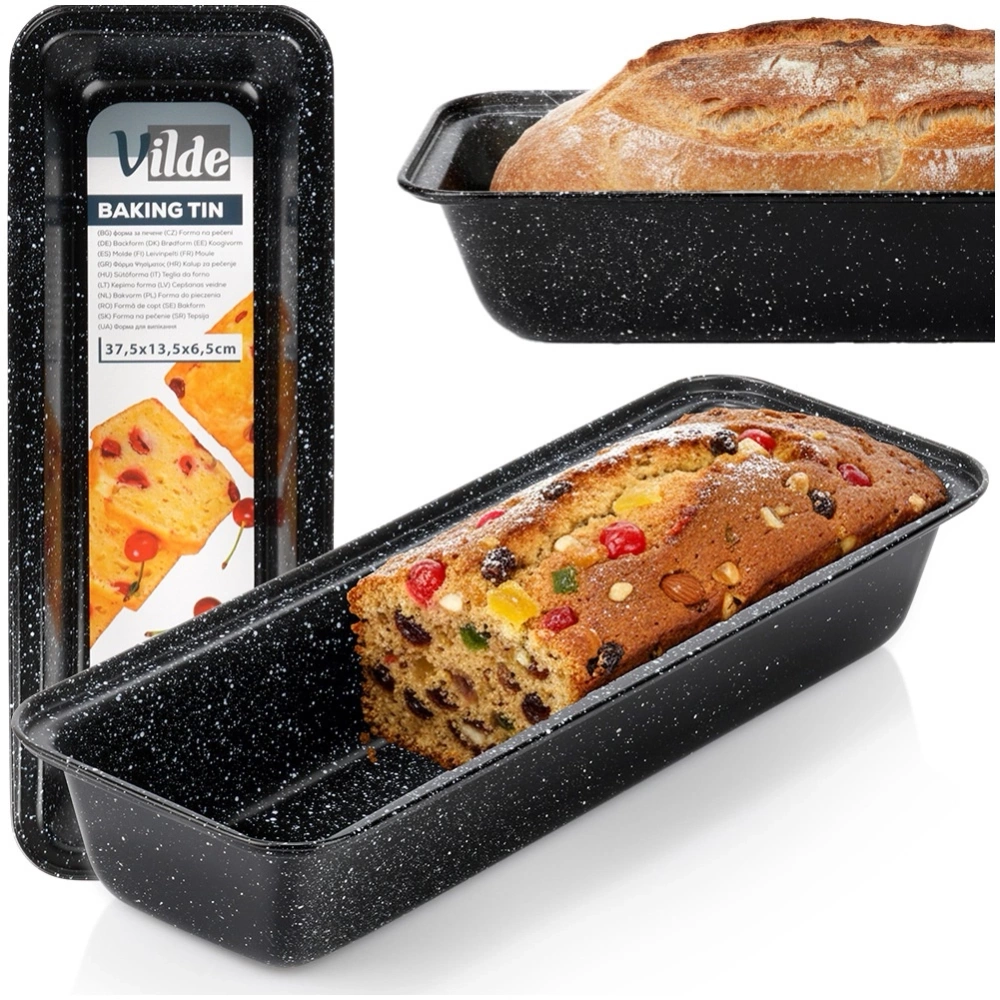 Prostokątna forma do pieczenia chleba, pasztetu, ciast ucieranych oraz drożdżowych. Idealna do pieczenia również babki. Odpowiedni kształt formy pozwoli na upieczenie keksu lub pasztetu w odpowiednim kształcie. Po wyjęciu z niej wypieki będą prezentować się niezwykle efektownie. Łatwa w czyszczeniu i wygodna w użytkowaniu. Oryginalny produkt marki Vilde. Wyprodukowano zgodnie z europejskimi standardami.