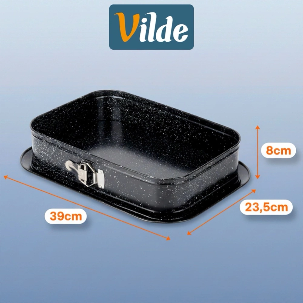 Prostokątna forma do pieczenia ciast i tortów. Rozpinane boki zapewnią wygodne wyciąganie upieczonego ciasta, ale także przydadzą się podczas mycia formy. Niezbędna w każdym domu. Wykonana z najwyższej jakości materiałów, co zapewni komfort użytkowania. Oryginalny produkt marki Vilde. Wyprodukowano zgodnie z europejskimi standardami.