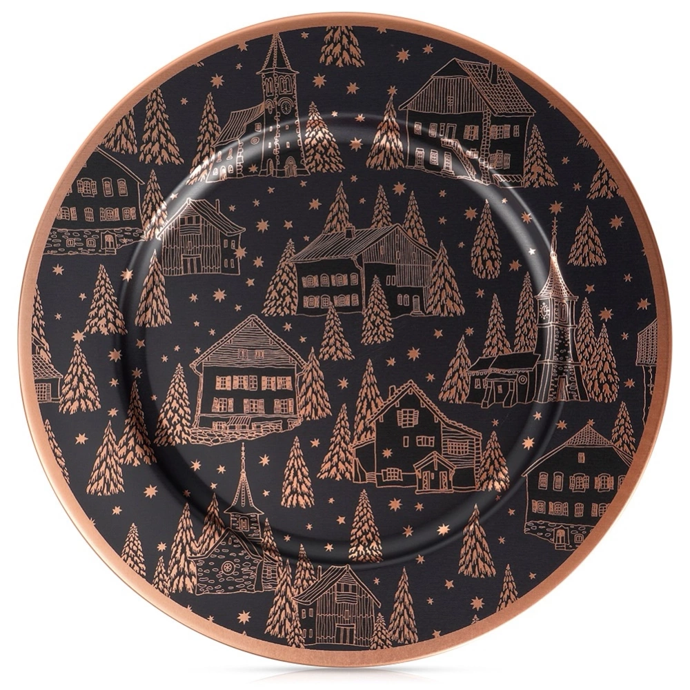 - Efektowny miedziany kolor - Wykonana z najwyższej jakości metalu w czarnym kolorze z efektownym wzorem domków oraz choinek w miedzianym kolorze.