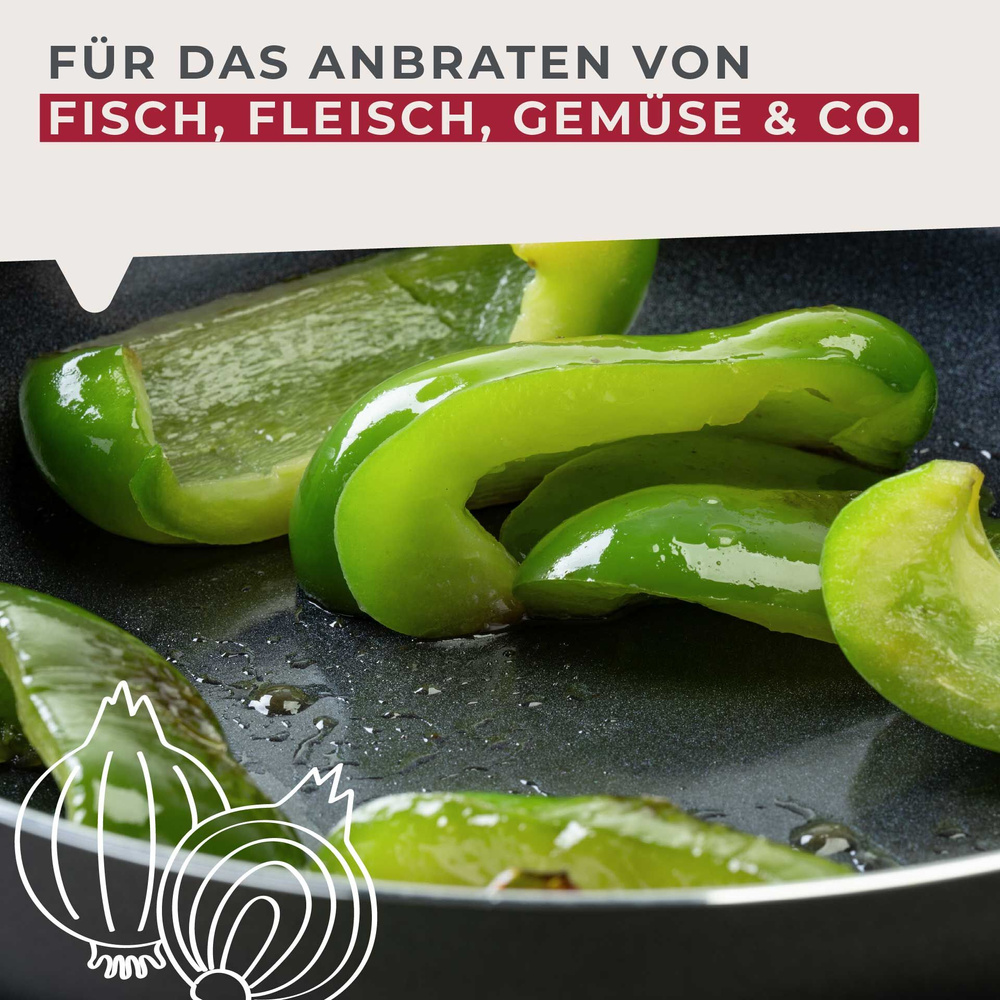 Patelnia idealnie nadaje się do przygotowywania różnorodnych potraw, takich jak smażone gnocchi, omlety czy soczyste duszone mięso. Sprawdzi się na wszystkich popularnych rodzajach kuchenek, w tym indukcyjnych.