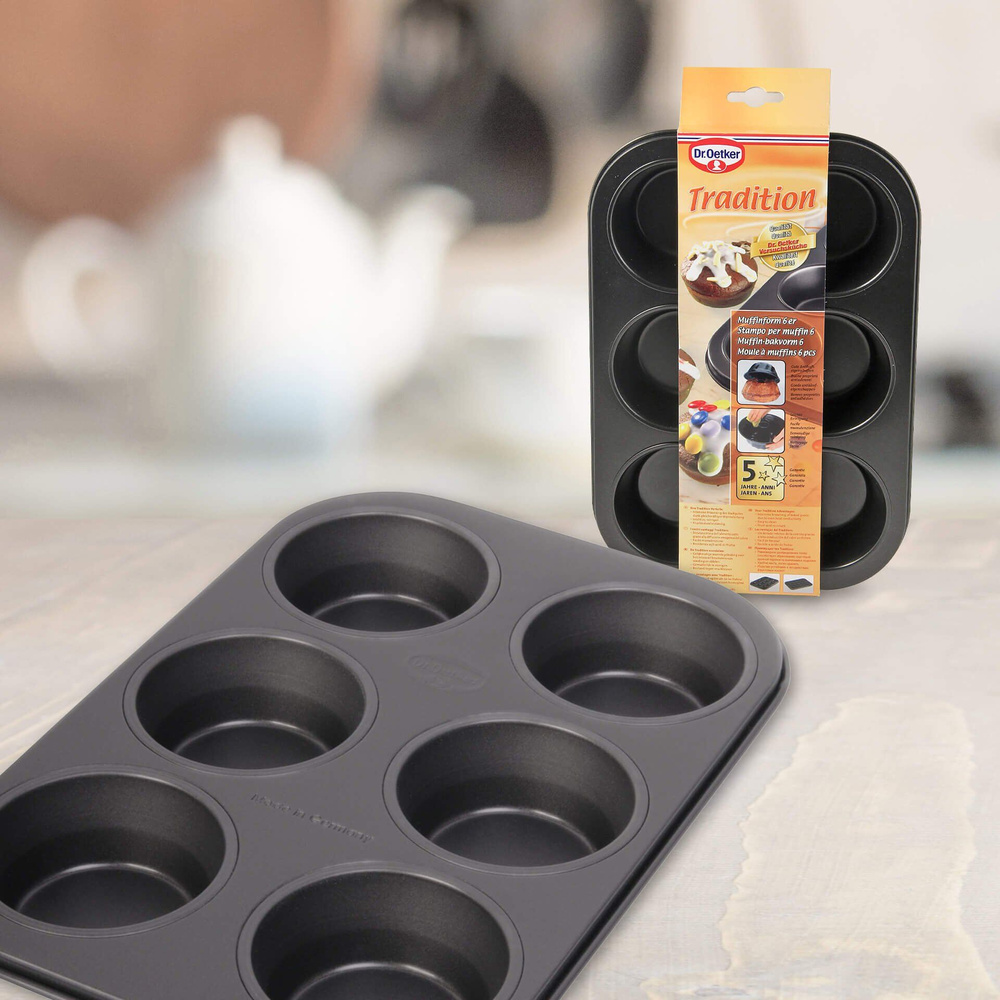 Forma do muffinek na 6 sztuk (Ø 5,5 cm) z serii "Tradition" od Dr. Oetkera to idealne rozwiązanie dla każdego miłośnika pieczenia. Dzięki klasycznej powłoce nieprzywierającej, Twoje muffinki będą się łatwo wyjmować, a ich równomierne pieczenie zapewni doskonały smak i wygląd. ⭐