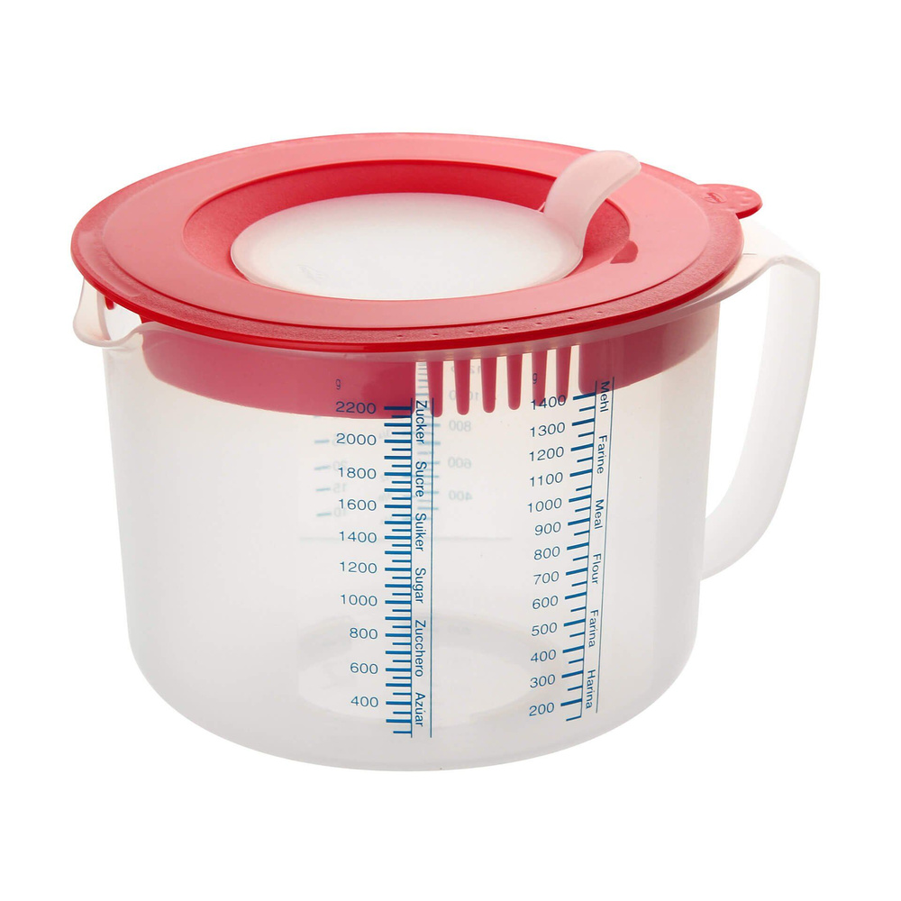 Miarka i kubek do mieszania doskonale nadaje się do odmierzania i mieszania składników w kuchni. Możesz w nim przygotować ciasto, sosy, a także przechowywać składniki dzięki pokrywce świeżości.