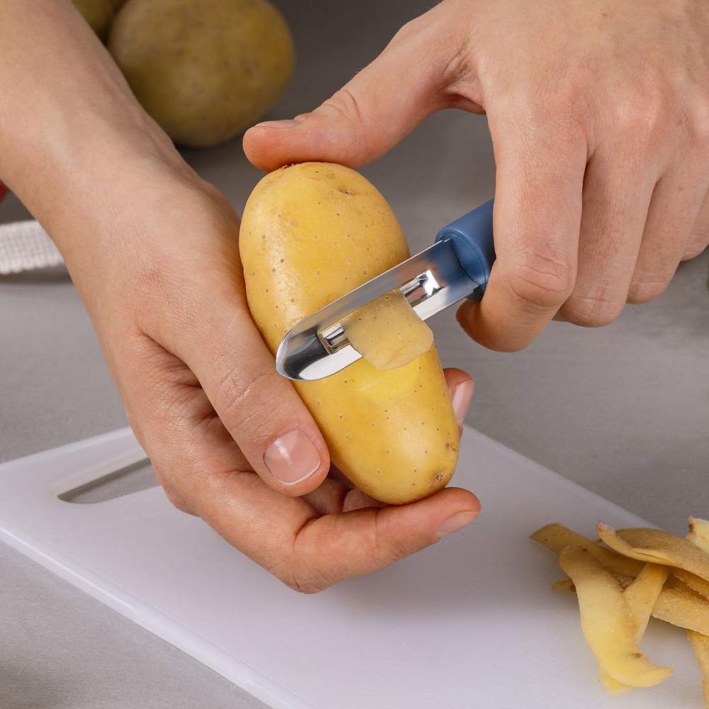 - Ułatw sobie gotowanie z obierakiem Fackelmann Essential – jego precyzyjne ostrze ze stali nierdzewnej i ergonomiczny uchwyt sprawią, że obieranie warzyw stanie się szybkie, wygodne i przyjemne!