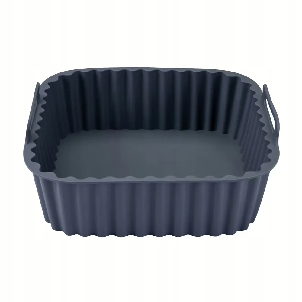 - Wkład silikonowy kwadratowy 15x15 cm do frytkownicy beztłuszczowej, wykonany z silikonu spożywczego bez BPA, odporny na temperatury do 230°C, idealny do przygotowywania zdrowych potraw i łatwy w czyszczeniu.