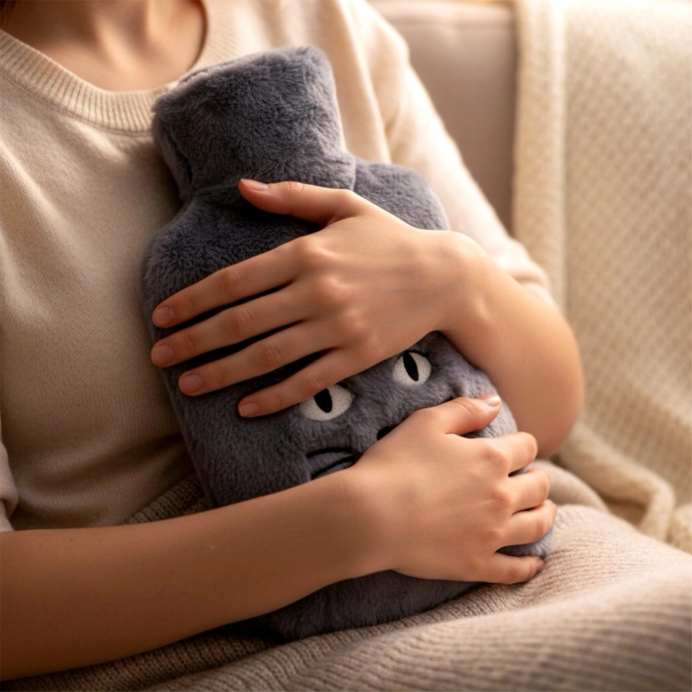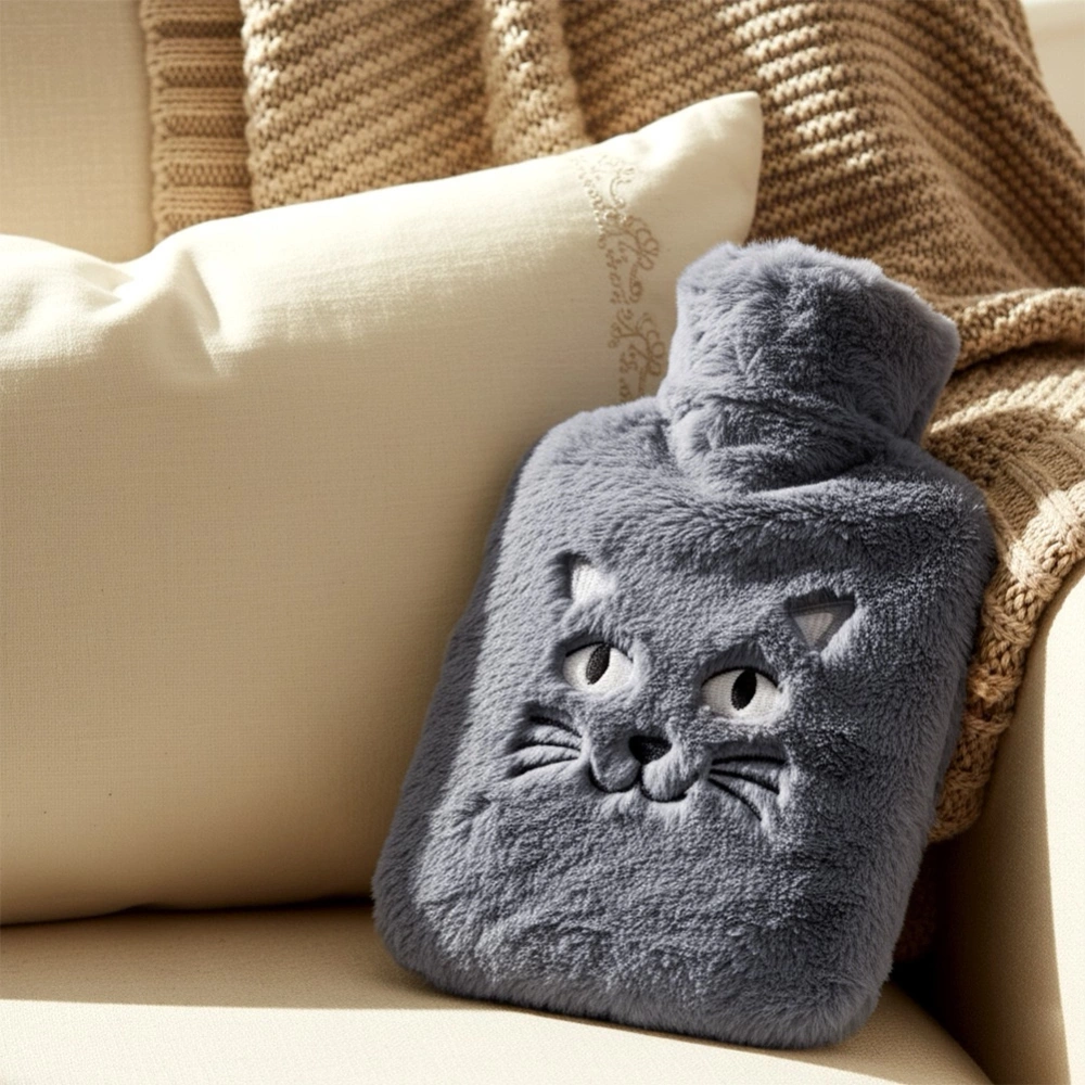 - Praktyczny termofor o pojemności 1,8 l - Termofor gumowy w miłym w dotyku pokrowcu w kolorze szarym z uroczą grafiką kota. Rozgrzeje w jesienno-zimowe wieczory, zapewni komfort i wprawi w dobry nastrój. Termofor ma pojemność 1,8 l (napełniamy go wodą) i wymiary 20 x 36 cm.