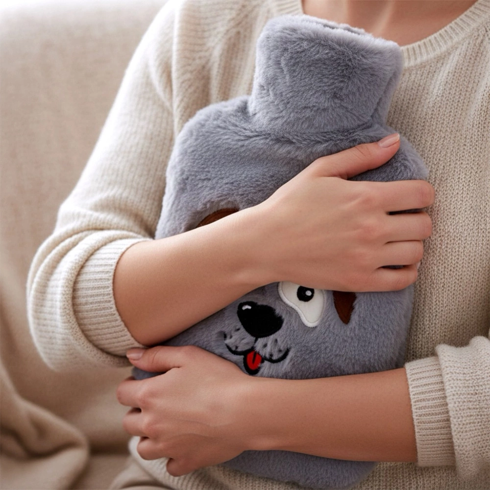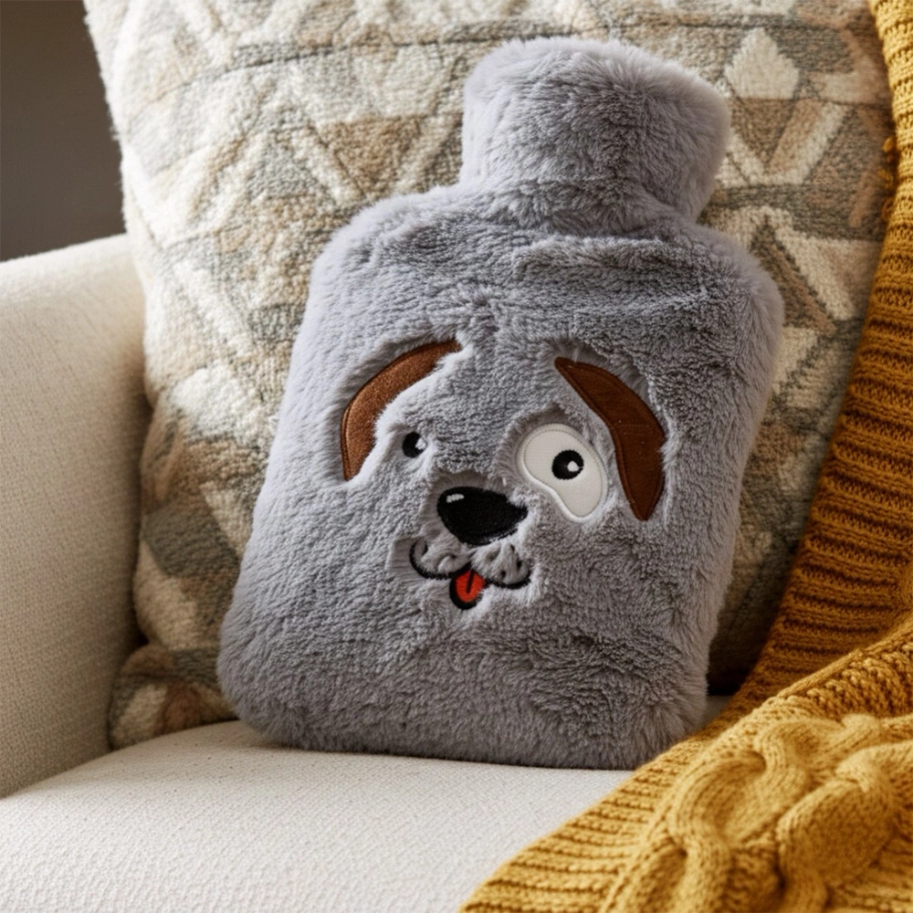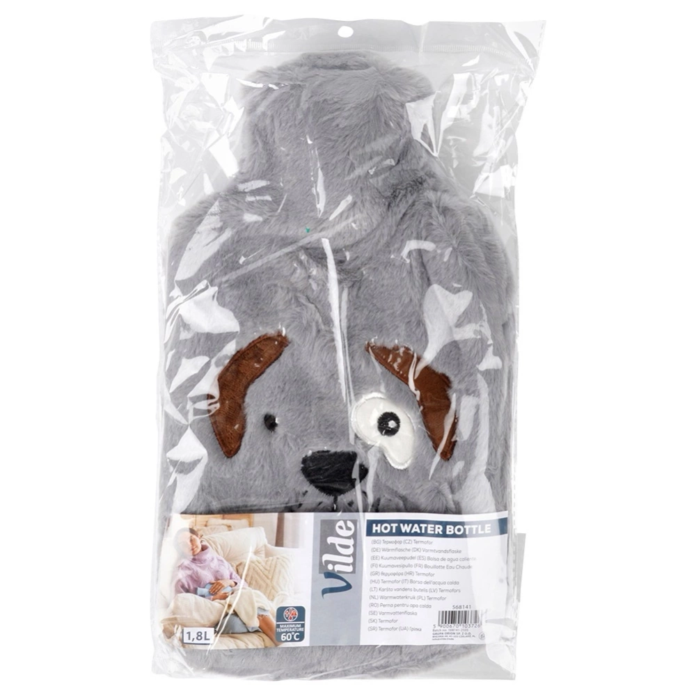 - Praktyczny termofor o pojemności 1,8 l - Termofor gumowy w miłym w dotyku pokrowcu w kolorze szarym z uroczą grafiką psa. Rozgrzeje w jesienno-zimowe wieczory, zapewni komfort i wprawi w dobry nastrój. Termofor ma pojemność 1,8 l (napełniamy go wodą) i wymiary 20 x 36 cm.
