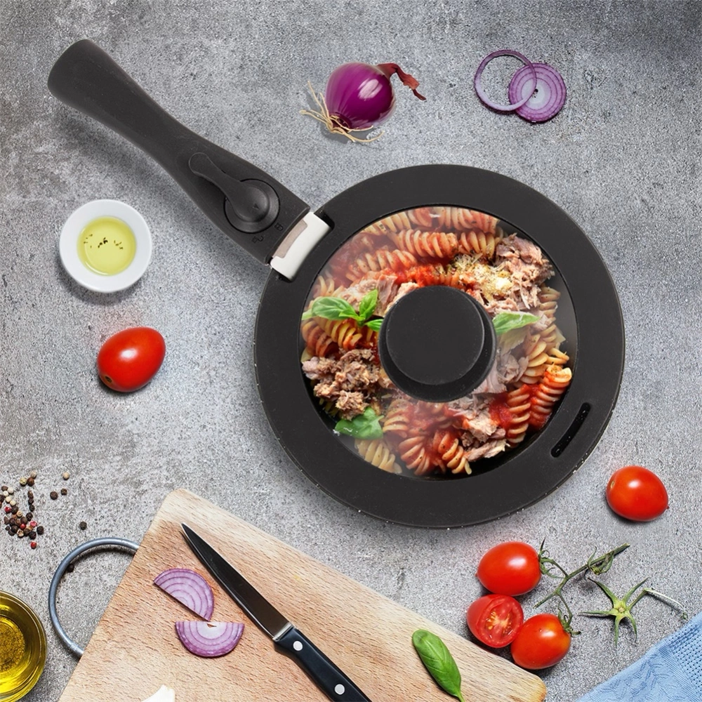- Pokrywka szklana z silikonową obręczą, odpowiednia do garnków o średnicy 18 cm. Wyposażona jest w specjalny otwór, który pozwala na uwolnienie nadmiaru pary.