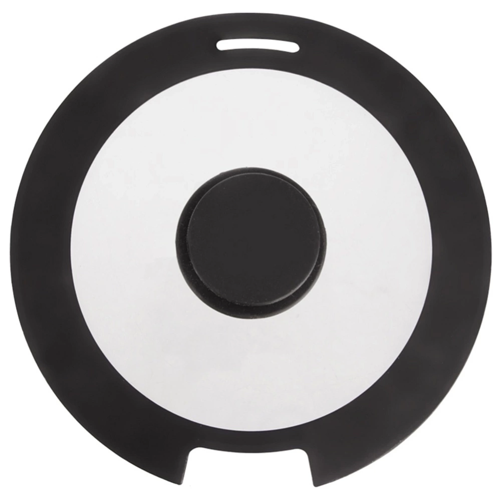 - Pokrywka szklana z silikonową obręczą, odpowiednia do garnków o średnicy 20 cm. Wyposażona jest w specjalny otwór, który pozwala na uwolnienie nadmiaru pary.