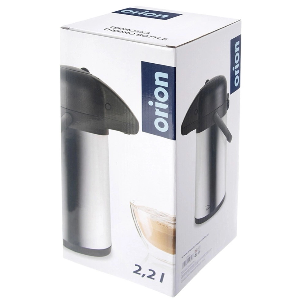Termos ciśnieniowy o pojemności 2,2 l zapewnia wygodne serwowanie gorących i zimnych napojów w różnych sytuacjach, w domu, w pracy czy podczas podróży. Solidne materiały podwójna ścianka gwarantują długotrwałe utrzymanie temperatury i odporność na codzienne użytkowanie. Praktyczna pompka, obrotowa podstawa i uchwyt sprawiają, że termos jest wygodny w obsłudze i idealny na dłuższe spotkania lub wyjazdy. Oryginalny produkt czeskiej marki Orion. Wyprodukowano zgodnie z europejskimi standardami.
