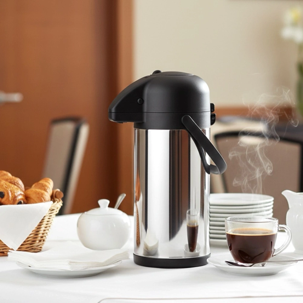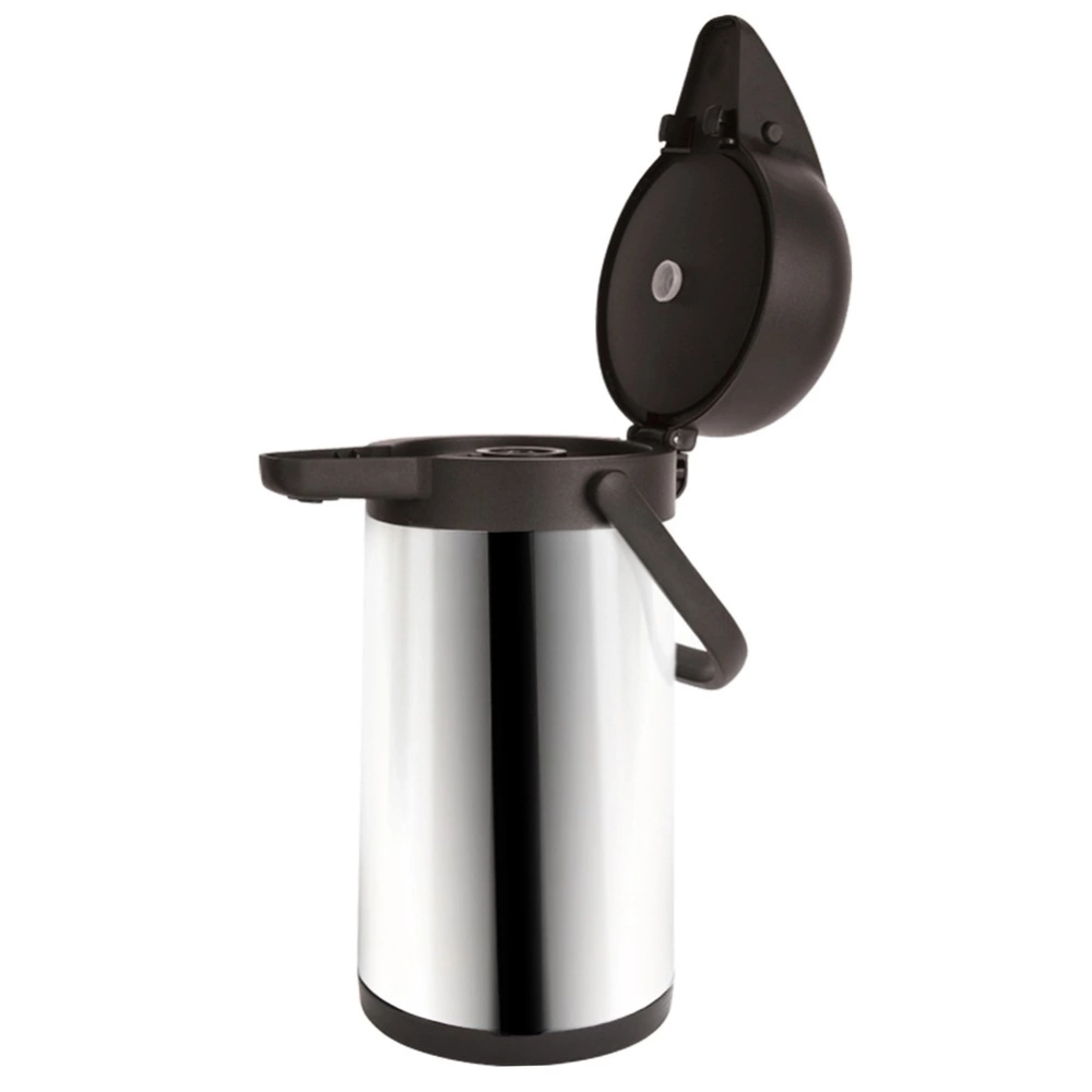 - Termos ciśnieniowy o poj. 2,2 l pozwala wygodnie serwować gorące i zimne napoje w domu, w pracy i podczas podróży. Wyposażony w pompkę, uchwyt i obrotową podstawę