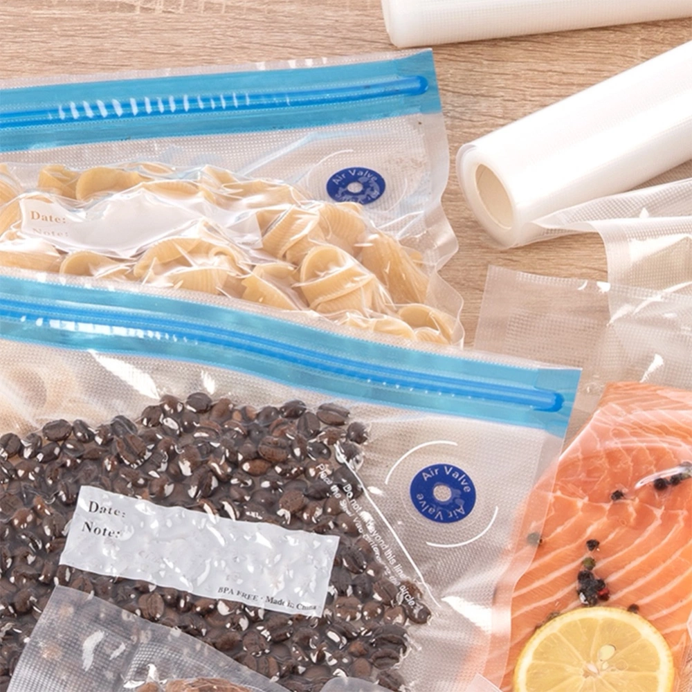 - Praktyczne w codziennym użytkowaniu - Idealne do przechowywania żywności w lodówce, zamrażarce oraz szafkach kuchennych. Jedna strona woreczka jest gładka, druga ma specjalną strukturę z wypustkami, ułatwiającą równomierne odsysanie powietrza.