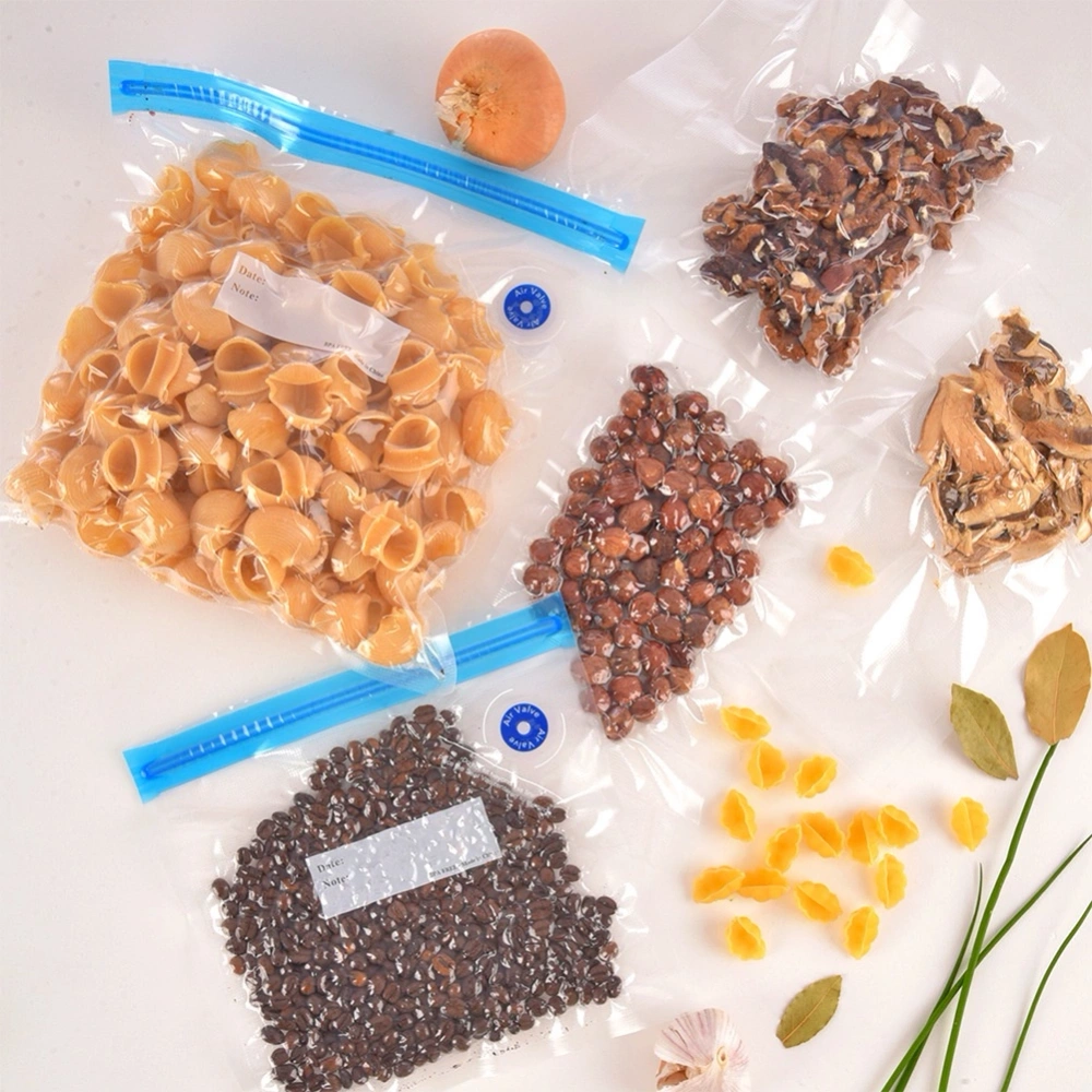 - Wyposażone w zawór i suwak zamykający - Woreczki posiadają praktyczny zawór umożliwiający szybkie odsysanie powietrza oraz suwak ułatwiający szczelne zamknięcie. W zestawie znajdują się dwa plastikowe suwaki do wygodnego zamykania.