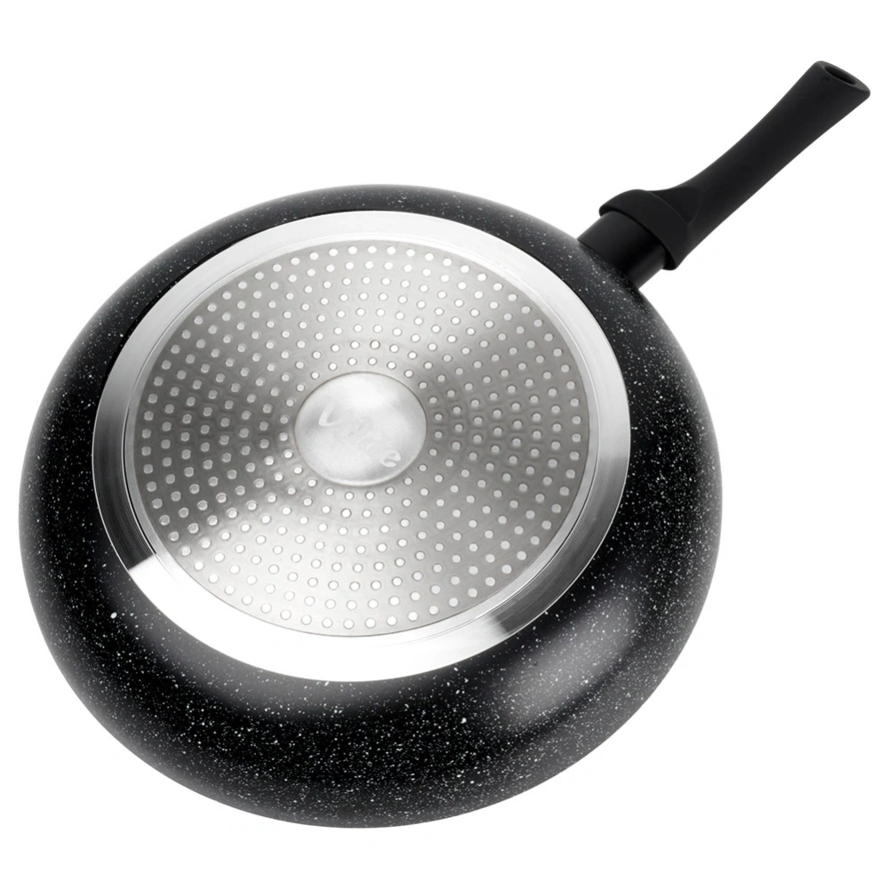 - Nieprzywierająca powłoka granitowa - Patelnia wykonana z aluminium z nieprzywierającą powłoką granitową w czarnym kolorze. Powierzchnia nieprzywierająca umożliwia przygotowywanie zdrowych i smacznych posiłków z minimalną ilością tłuszczu. Wyposażona w uchwyt wykonany z najwyższej jakości, wytrzymałego tworzywa w czarnym kolorze.