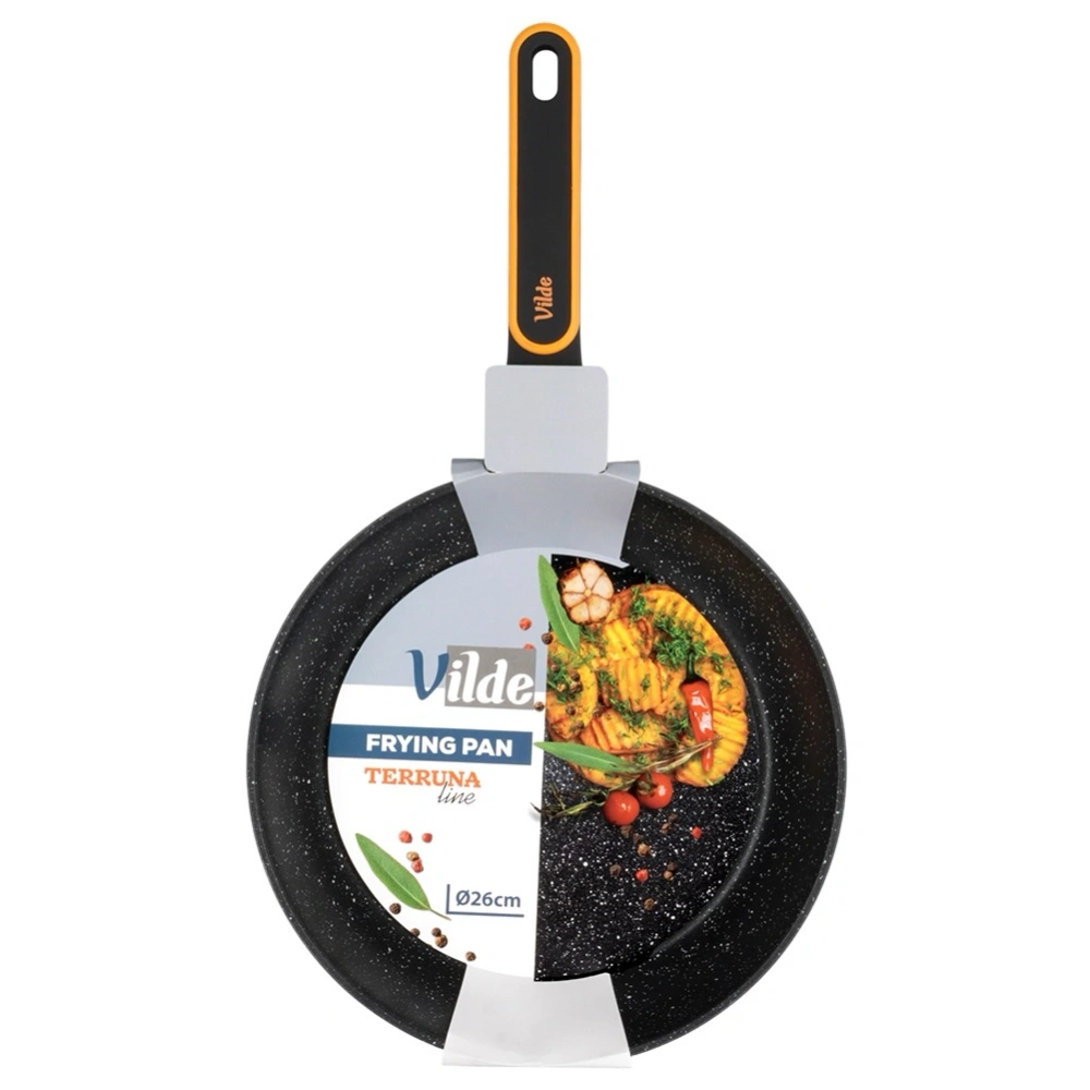 Nieprzywierająca patelnia o wyjątkowym, ponadczasowym wyglądzie. Patelnia posiada modny design, dzięki czemu efektownie prezentuje się w kuchni. Niezastąpiona w każdej kuchni, ułatwia gotowanie, smażenie i duszenie potraw. Wykonana z najwyższej jakości materiałów, odpowiednio użytkowana posłuży długie lata. Oryginalny produkt marki Vilde z linii Terruna. Wyprodukowano zgodnie z europejskimi standardami.