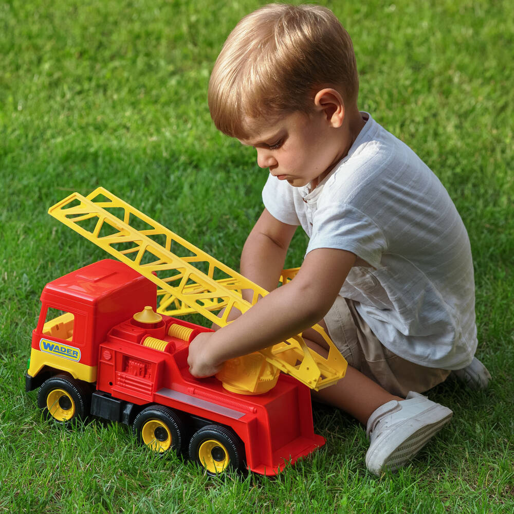 Middle Truck Straż Pożarna firmy Wader to fantastyczny wóz strażacki z wysuwaną, ruchomą drabiną. Będzie doskonałym prezentem dla najmłodszych marzących, aby zostać strażakiem. Solidna i trwała konstrukcja w sposób rzeczywisty oddaje wygląd i przeznaczenie prawdziwego wozu strażackiego. Ruchome, funkcjonalne elementy pozwolą maluchowi przenieść się w wyobraźni na teren akcji strażackiej. Zabawa Middle Truck Straż Pożarna pomoże rozwinąć umiejętności zręcznościowe, pobudzi wyobraźnię i kreatywność dziecka oraz rozwój koordynacji wzrokowo-ruchowej. Doskonale sprawdza się podczas zabawy w pojedynkę oraz w grupie. Odgrywanie akcji strażackiej i zabawa z rówieśnikami pozytywnie wpłynie na rozwój kompetencji społecznych dzieci, nauczy zachowania w grupie, podziału ról, kompromisów, negocjacji i dzielenia się. Zabawka wykonana jest z najwyższej jakości, wytrzymałych, nietoksycznych materiałów odpornych na różne warunki atmosferyczne, dlatego idealnie nadaje się zarówno do zabawy w domu, jak i na zewnątrz. Solidność konstrukcji i bardzo dobra jakość wykonania sprawi, że zabawka będzie służyła dzieciom przez długi czas. Middle Truck Straż Pożarna to bezpieczna zabawka przeznaczona dla dzieci powyżej 3 lat.