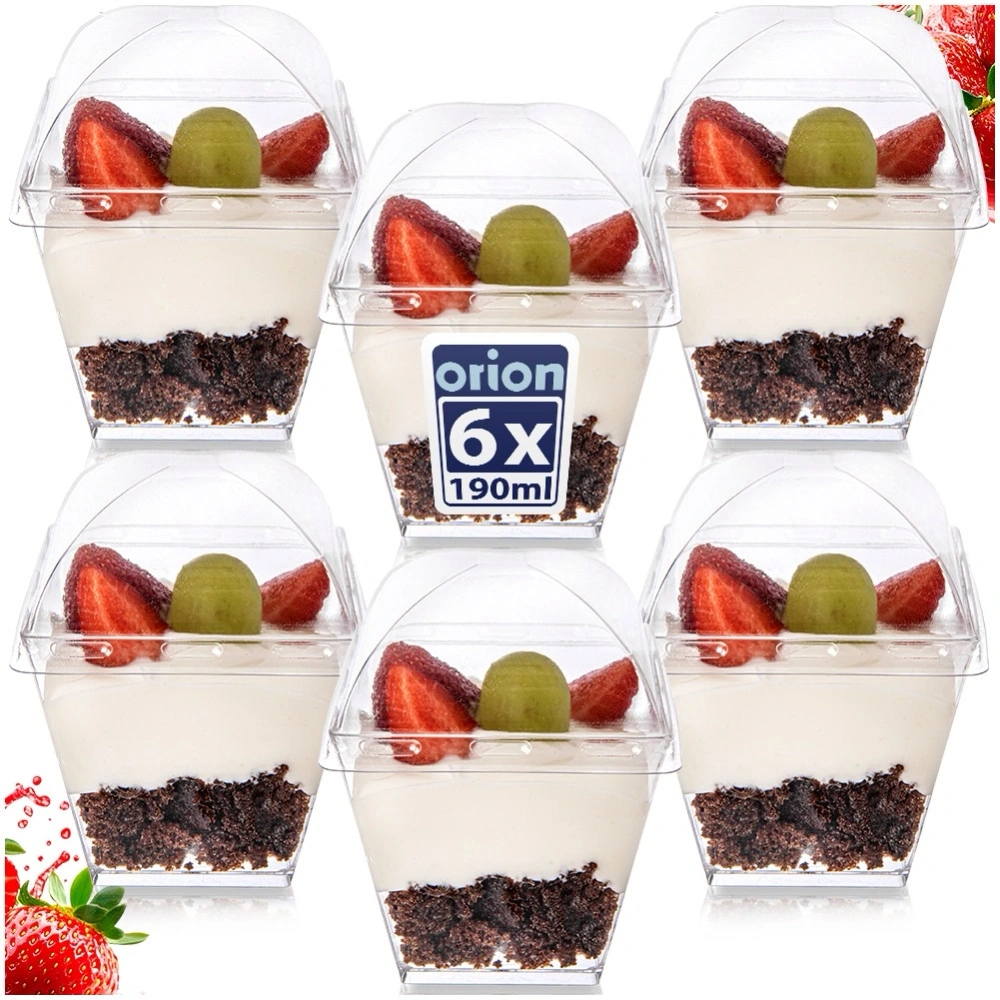 Zestaw sześciu pucharków w zestawie z pokrywkami do serwowania słodkich i słonych przekąsek. Idealne do podania przekąsek, mini deserów. Niezwykle efektownie prezentują się na stole podczas przyjęć. Dzięki nim możemy przygotować słodkie stoły oraz poczęstować gości mini przekąskami. W wersji mini serwowanie deserów oraz przekąsek jest higieniczne, dlatego sprawdzi się podczas bankietów oraz konferencji. Oryginalny produkt czeskiej marki Orion. Wyprodukowano zgodnie z europejskimi standardami.