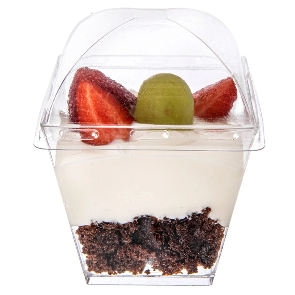 - Praktyczna pokrywka w zestawie - Pucharek wyposażony jest w przezroczystą pokrywkę, która ułatwia przenoszenie przekąsek i ich estetyczną ekspozycję na stole lub bufecie.