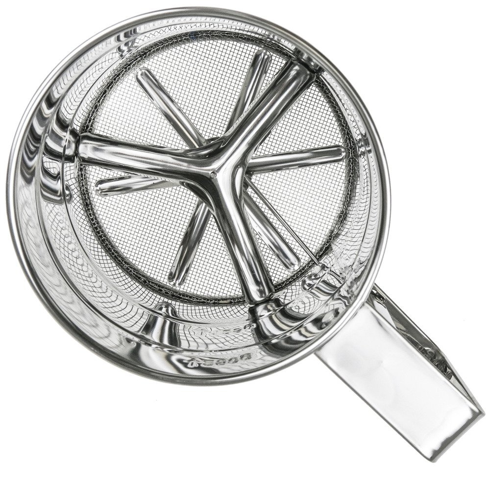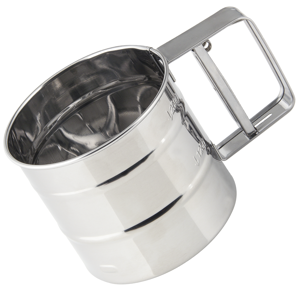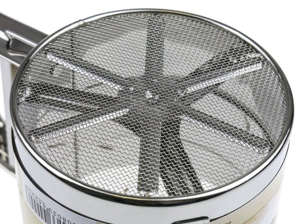 - Przesiewacz marki ZENKER niemieckiej firmy Fackelmann został wykonany ze stali nierdzewnej polerowanej na wysoki połysk. Posiada skalę pomiarową do odmierzania ilości mąki lub cukru pudru – maksymalna pojemność 300 g.