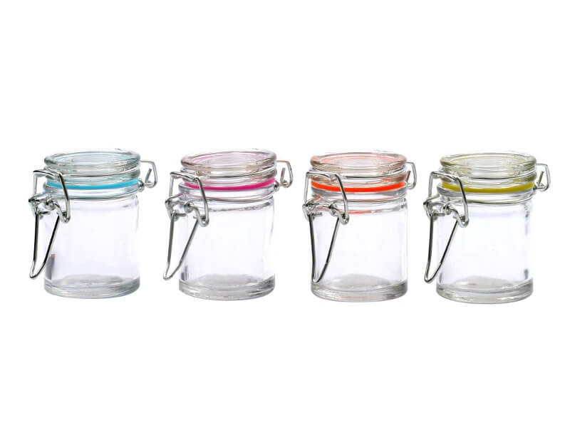 - Wielofunkcyjny słoiczek z klamrą i silikonową uszczelką do zastosowania w domu, kuchni, ogrodzie lub pracy. Niewielki rozmiar i przezroczyste szkło sprawia, że słoiczka można użyć w dowolny sposób.