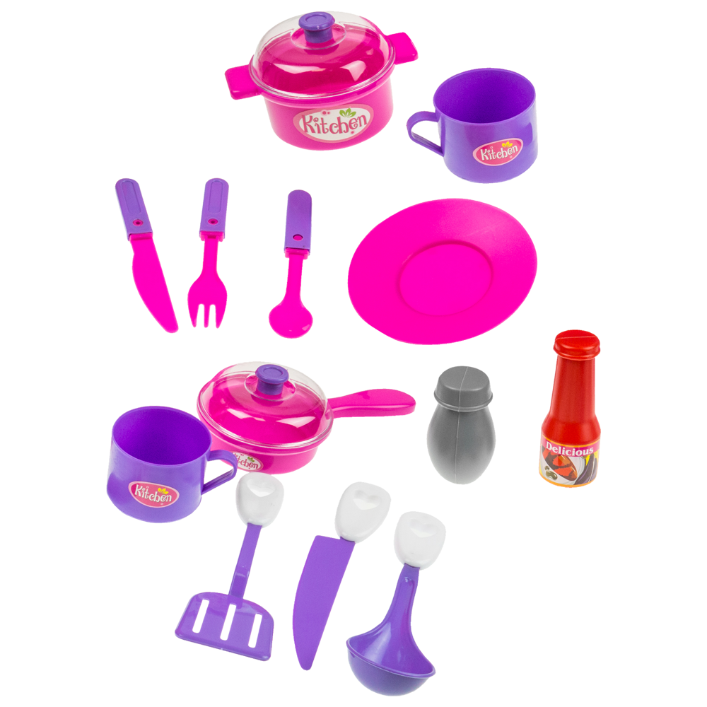 Zestaw małego kucharza uczy pociechę obowiązkowości i dojrzałości - bawiąc się w dom naśladuje rodziców. Zabawa rozwija instynkt opiekuńczy, gdy dziecko przygotowuje posiłki dla swoich lalek i karmi je.