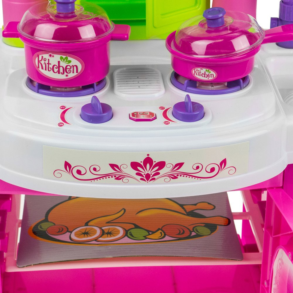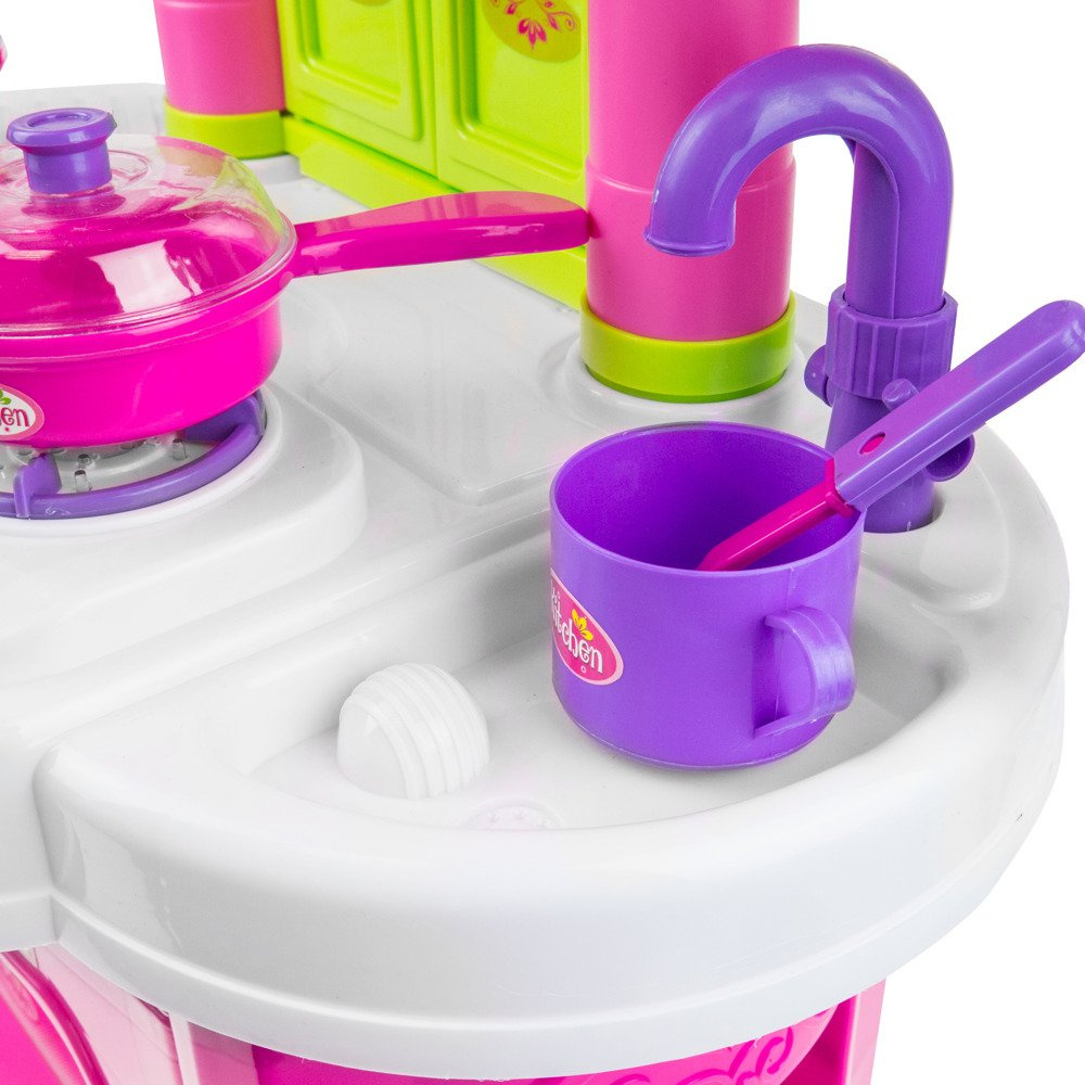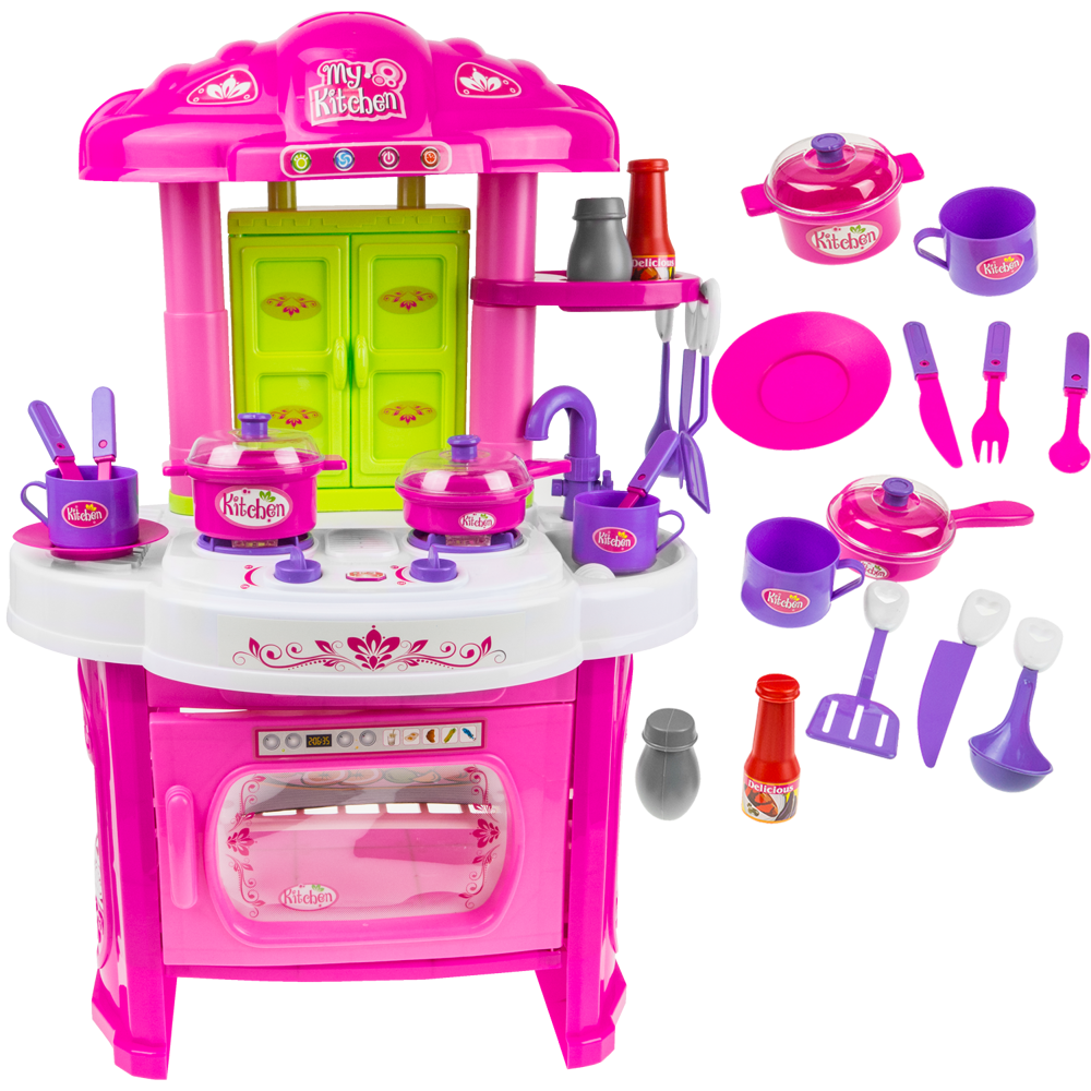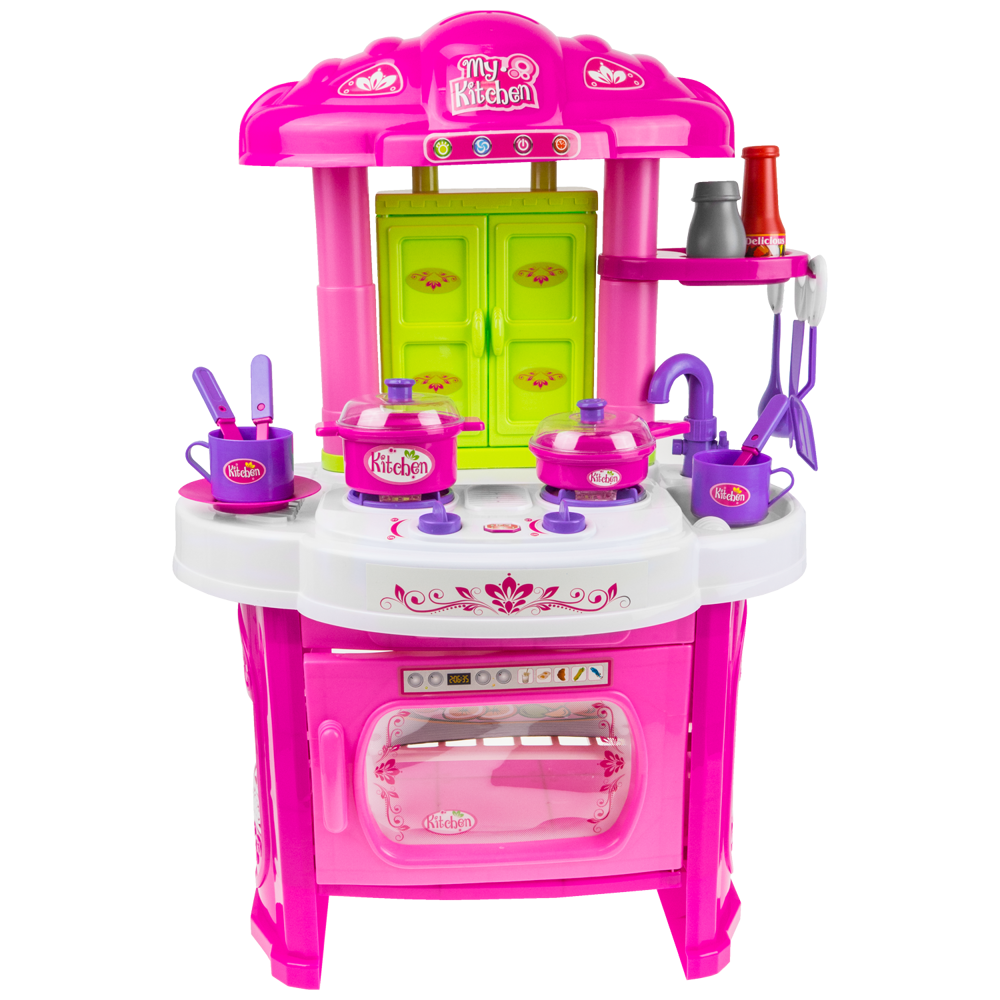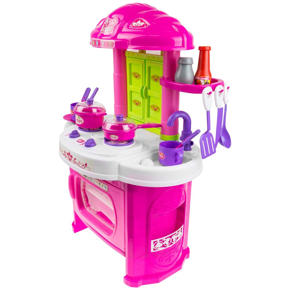 Wszystkie akcesoria wykonane są z bezpiecznych dla dzieci, nietoksycznych materiałów. Kuchnia zasilana 3 bateriami AA (brak w zestawie). Produkt zapakowany w oryginalne opakowanie - śliczny różowy karton. Idealny na prezent!