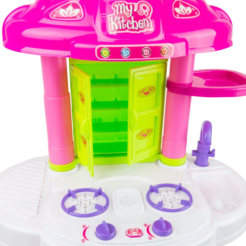Kuchnia posiada dwa niezależne palniki wraz z kurkami. Palniki po włączeniu świecą - aż 18 czerwonych diodek LED, które żarzą się imitując palący się ogień. Kuchenka wydaje odgłosy gotowanych potraw. Piekarnik posiada otwierane drzwiczki, po ich otwarciu w piekarniku zapala się światełko. Nad kuchenką znajduje się półka z haczykami, na których można powiesić przybory kuchenne tak aby mieć je zawsze pod ręką.