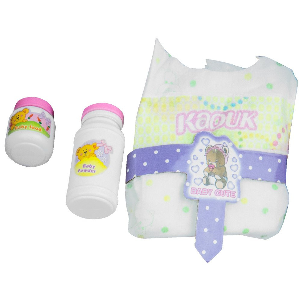 Do zestawu dołączono także nocniczek. Lalka może zrobić siusiu do nocnika lub do pieluszki, którą dziecko również znajdzie w komplecie. Maluch nauczy się, że trzeba opiekować się bobasem i zmieniać mu pieluszkę. Zabawka ma ruchome kończyny, dlatego zabawa nią może trwać bardzo długo. Łatwo się ją przebiera oraz kąpie. Do zestawu dołączono inne niezbędne akcesoria do pielęgnacji maluszka - puder, balsam, dwie butelki, śliniaczek oraz słoiczek z jedzeniem.