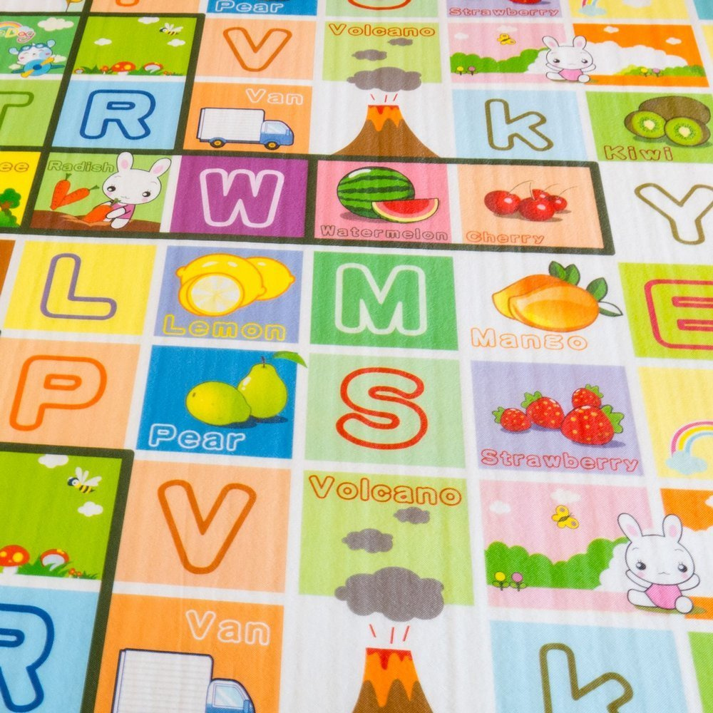 - Duża dwustronna mata edukacyjna 180x200 cm, doskonała do zabawy na świeżym powietrzu lub w domu.