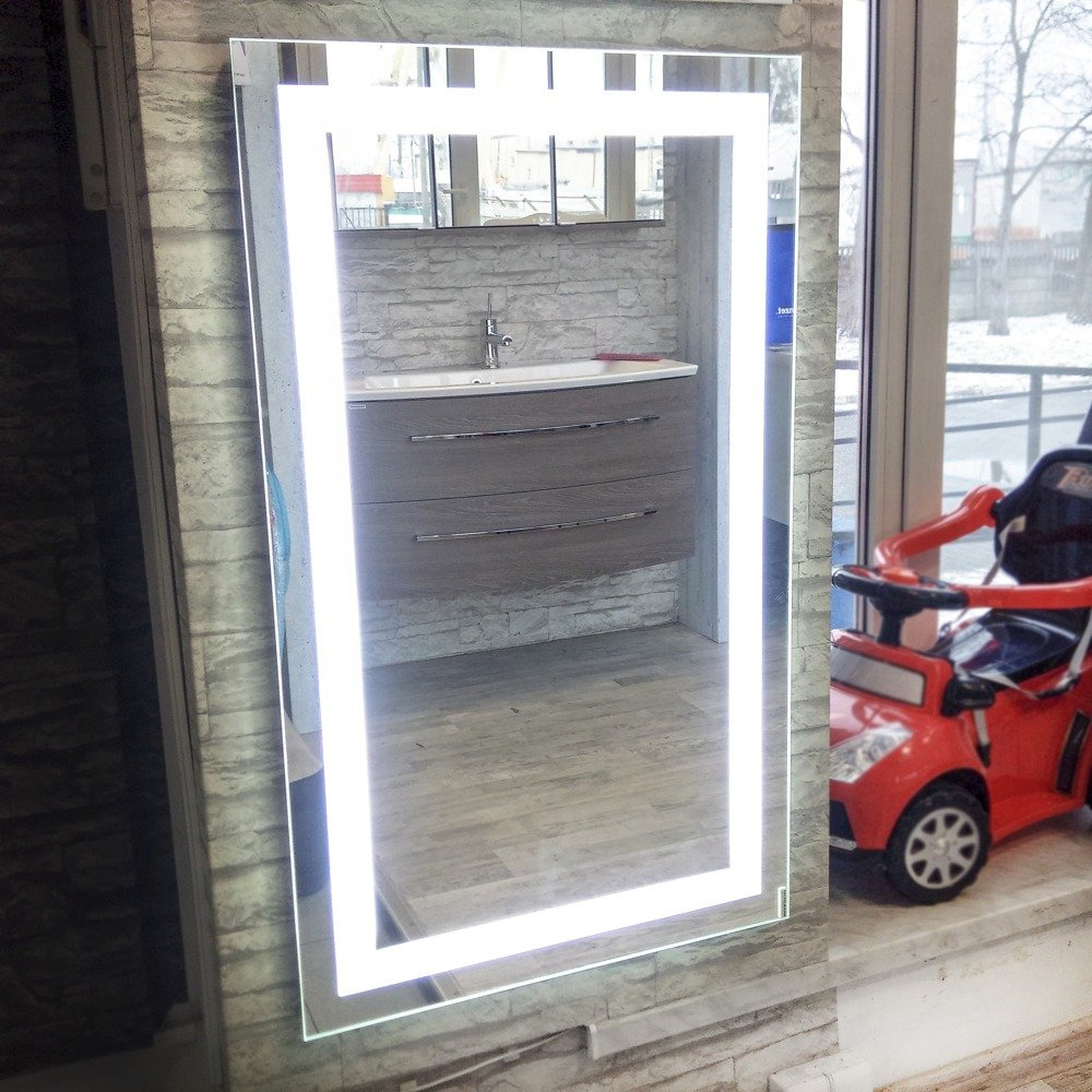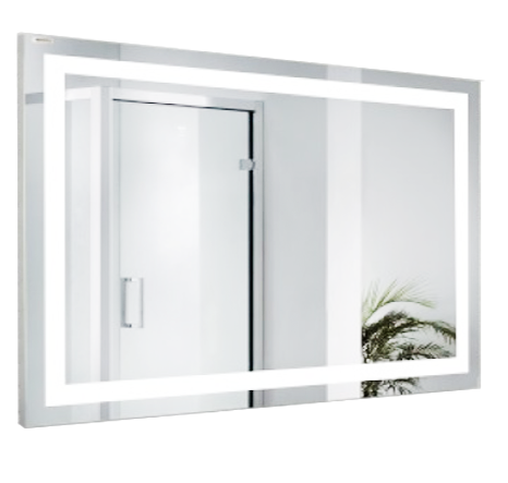 - Lustro łazienkowe o wymiarach 100 cm x 60 cm z oświetleniem ledowym oraz włącznikiem bezdotykowym. Panele oświetleniowe z światłem neutralnym białym pozwolą na optymalne oświetlenie twarzy oraz sylwetki osoby stojącej przed lustrem.