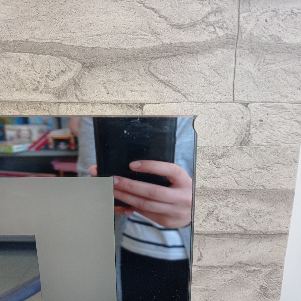 Lustro pochodzi z ekspozycji posiada małe ukruszenie w rogu lustra, oświetlenie oraz włącznik działa.