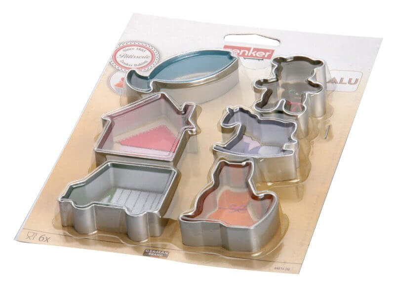 - Komplet do wykrawania ciasteczek idealnie sprawdzi się do wypieków z najmłodszymi. W zestawie znajduje się 6 wzorów.