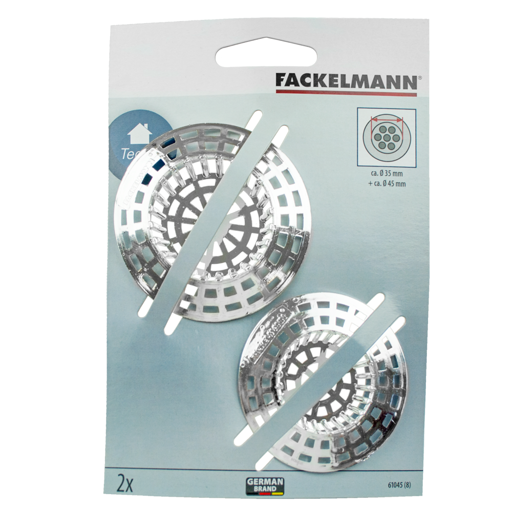 - Zestaw dwóch sitek do zlewu marki Fackelmann pasuje do odpływu o średnicy 35mm i 45mm. Wykonane z wysokiej jakości plastiku w kolorze srebrnym.