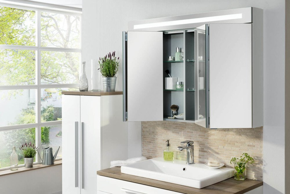 - Szafka lustrzana z efektem 3D umożliwiającym oglądanie sylwetki z każdej strony. Dodatkowo oświetlenie LED doskonale oświetli twarz podczas golenia lub makijażu.