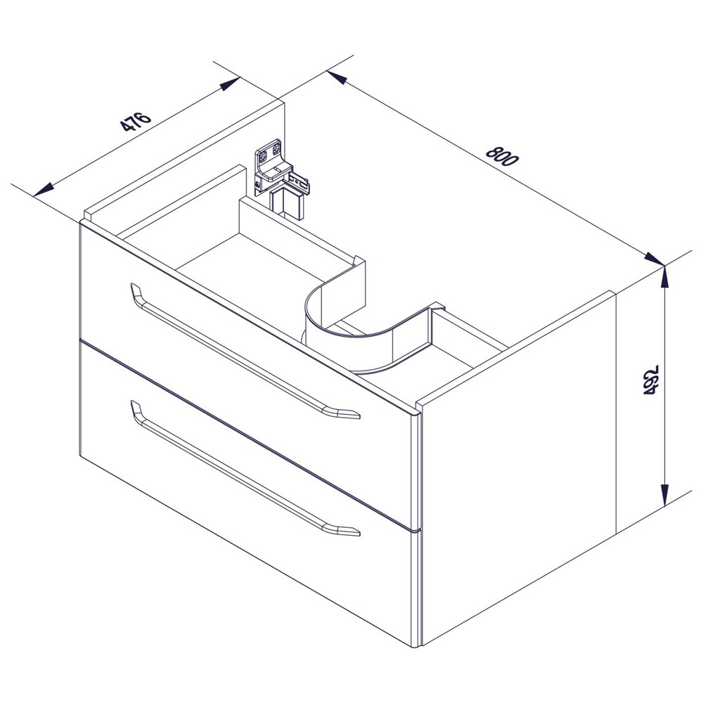 - Szafka łazienkowa pod umywalkę o szerokości 80 cm z korpusem w kolorze sękaty dąb oraz frontem w kolorze białym.