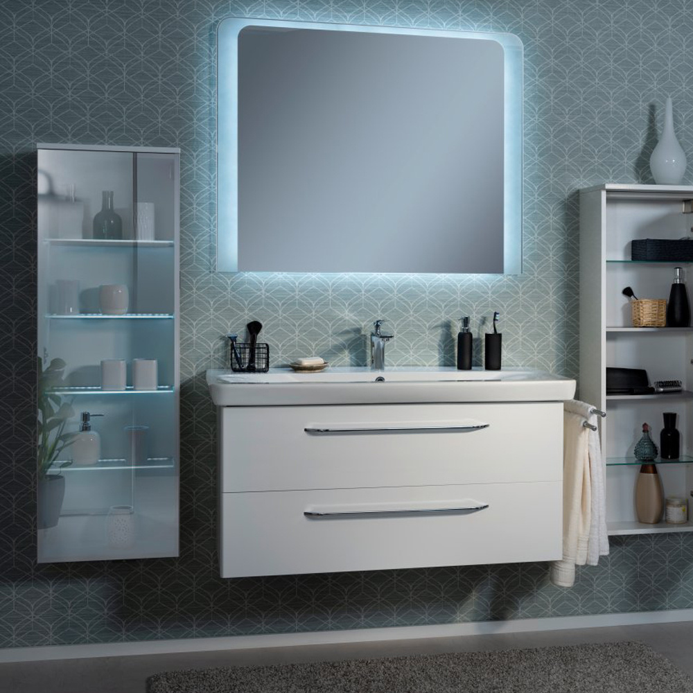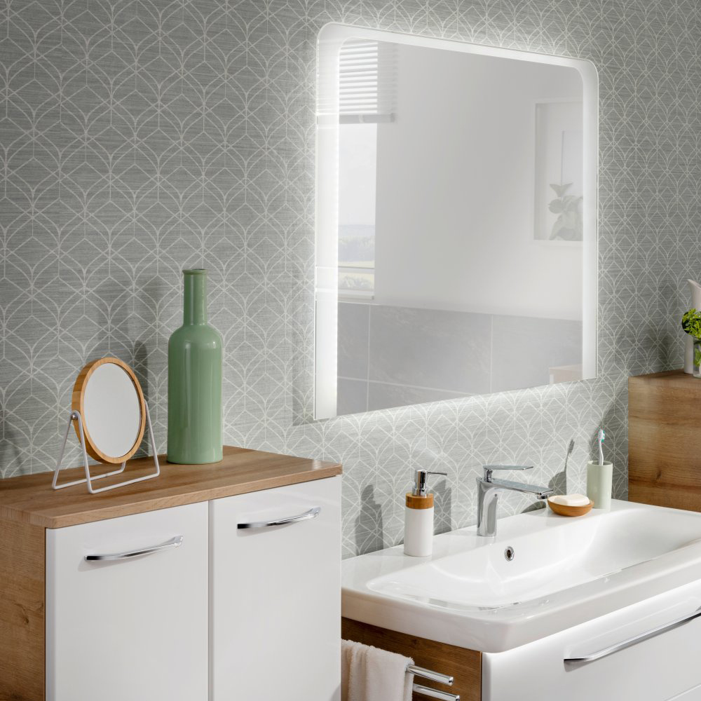 Lustro łazienkowe wyposażone w wymienne oświetlenie LED o wymiarach 100 x 80 cm efektywnie oświetla pomieszczenie oraz osobę stojącą przed nim. Proste i uniwersalne wzornictwo sprawia, że model ten doskonale współgra z wnętrzami o zróżnicowanej stylistyce.