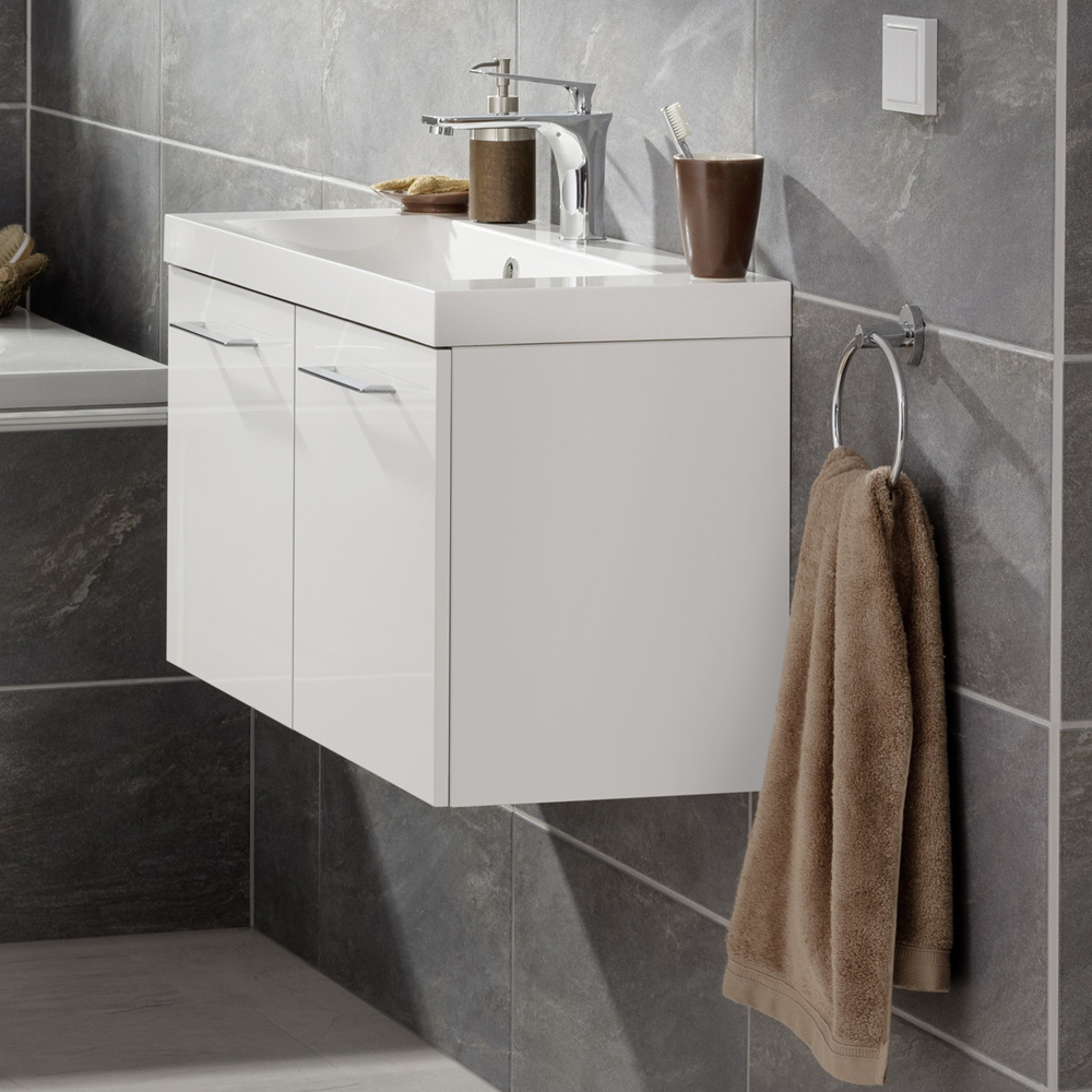 W kolekcji znaleźć można umywalki wykonane z dwóch rodzajów materiałów - ceramiczną o szerokości 60 cm oraz konglomeratową, dostępną w dwóch rozmiarach: 60 cm oraz 80 cm. Wszystkie z nich mają zaledwie 35 cm głębokości i można dopasować je do dedykowanych szafek dostępnych w 3 szerokościach.