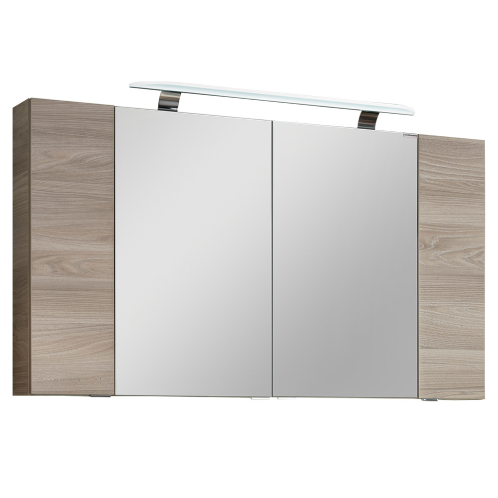Świetnym rozwiązaniem może okazać się rozbudowa lustrzanej szafki z oświetleniem LED o szerokości 80 cm - dzięki dopasowaniu do niej szafek bocznych o szerokości 20 cm z lustrzanymi frontami, zyskać można dużo większą powierzchnię lustra, jednak nie jest to jedyna możliwość - górne szafki boczne dostępne są również w wersjach z frontami w kolorze mebli.