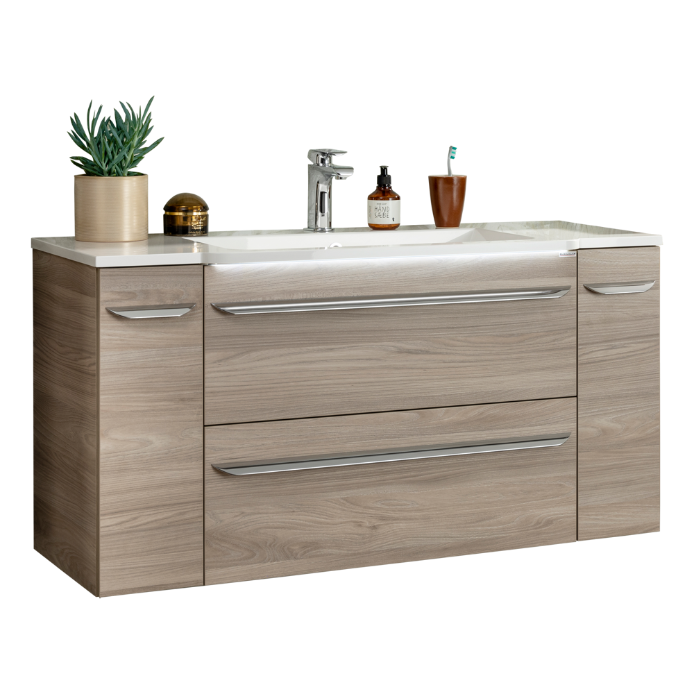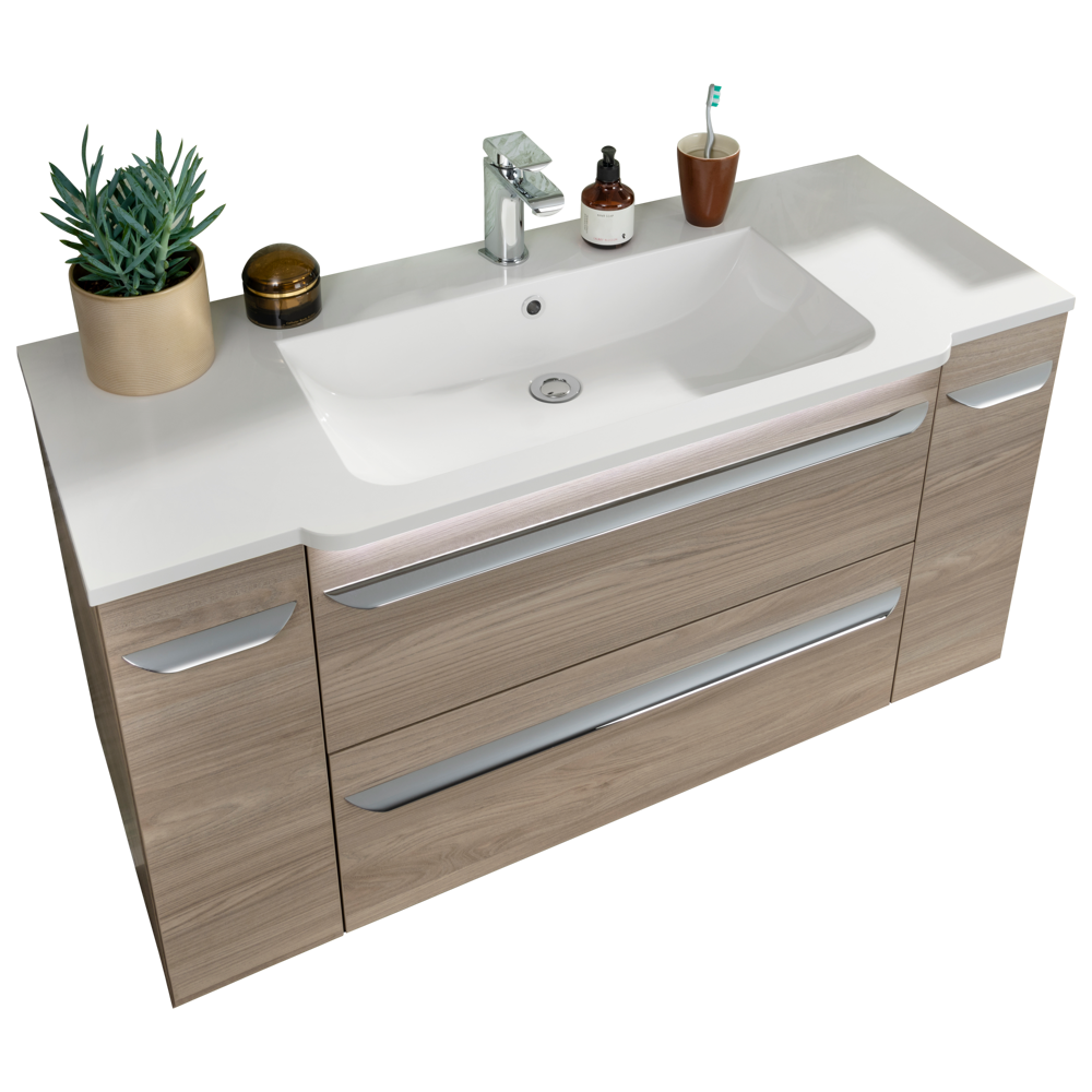 Zestaw szafka łazienkowa + szafki boczne z umywalką z konglomeratu 120 cm szary dąb Luxor Fackelmann