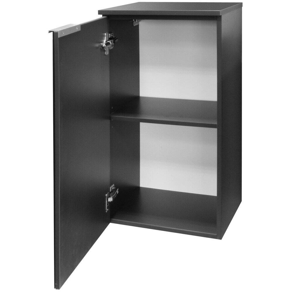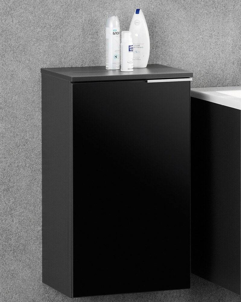 - Szafka łazienkowa boczna, 1-drzwiowa o szerokości 40,5 cm. Fronty wykonane z lakierowanego szkła w kolorze antracytowym.