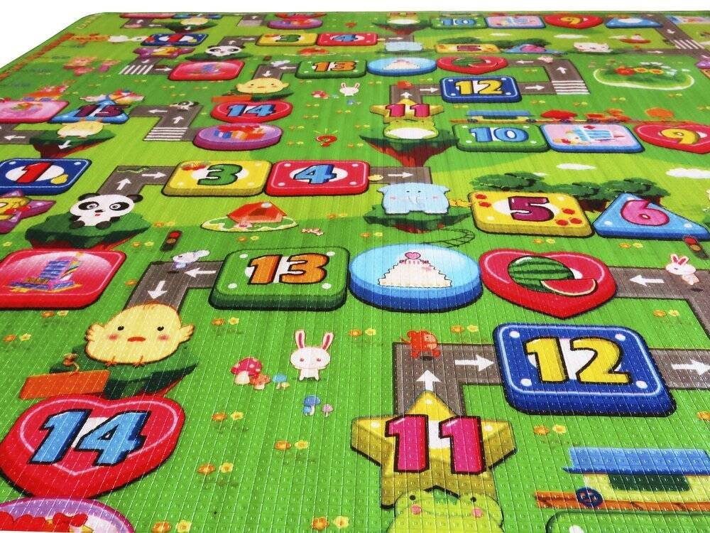 - Duża mata edukacyjna 177x197 cm, doskonała do zabawy na świeżym powietrzu lub w domu.
