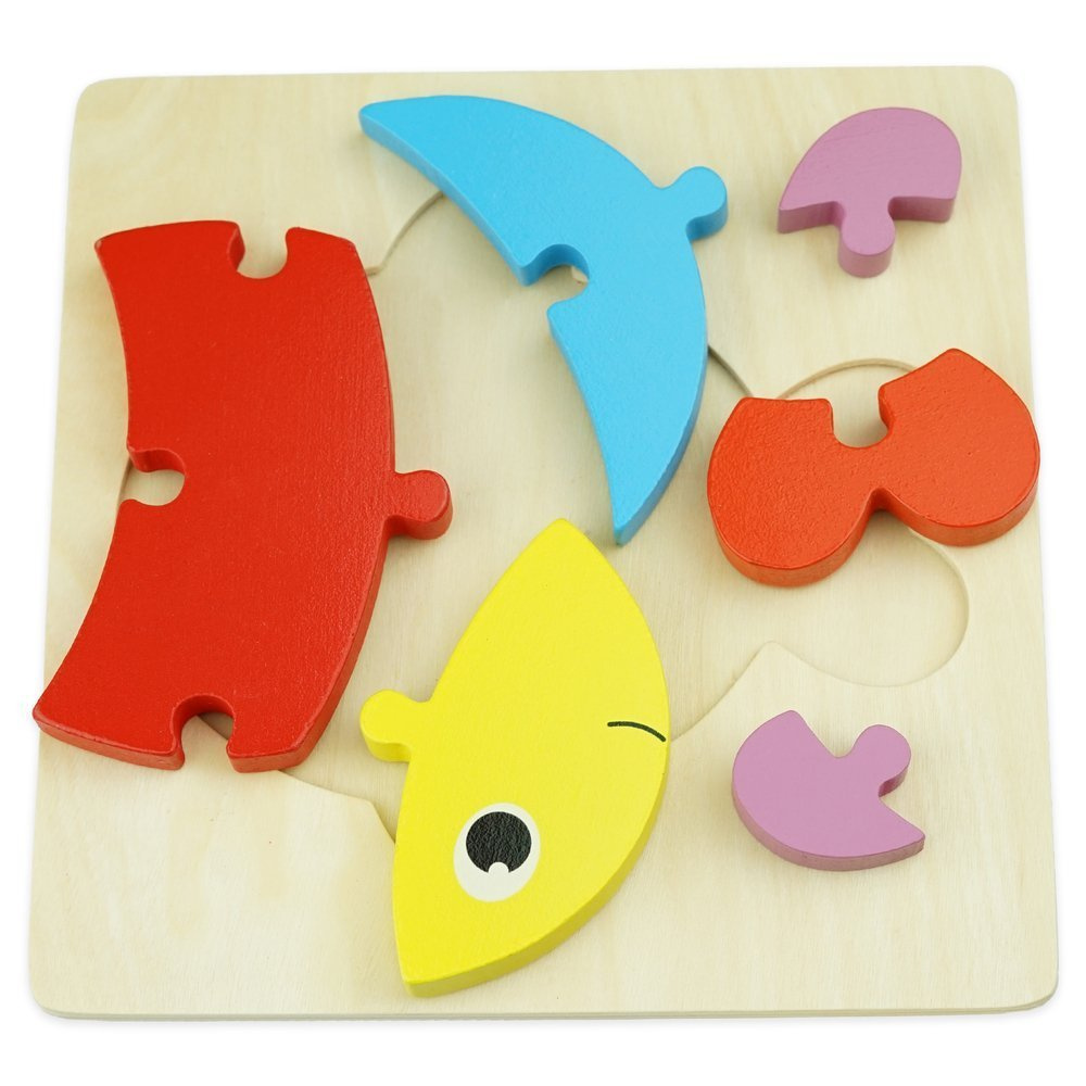 - Nauka przez zabawę! Drewniana kolorowa układanka puzzle RYBKA to doskonała zabawka edukacyjna, która kształtuje manualne zdolności dziecka.