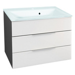 Szafka 79,4 cm z białą umywalką szklaną antracyt + białe lakierowane szkło Kara Fackelmann