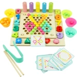 Drewniana gra 2 w 1 pamięć i drewniana układanka kolorowe kulki