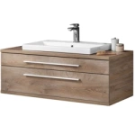 Szafka łazienkowa 110 cm dąb naturalny z ceramiczną umywalką nablatową 60 cm Stanford Fackelmann