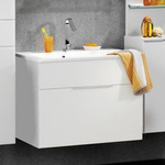 Komplet mebli łazienkowych z serii X3 szafka, lustro oraz umywalka 41 cm Biały wysoki połysk
