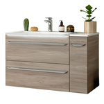 Zestaw szafka łazienkowa + boczna prawa z umywalką z konglomeratu 100 cm szary dąb Luxor Fackelmann
