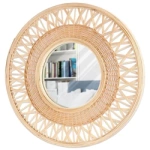 Lustro ścienne drewniane beżowe okrągłe 56 cm
