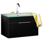 Zestaw mebli łazienkowych z serii Luna z miętową umywalką szklaną Fackelmann